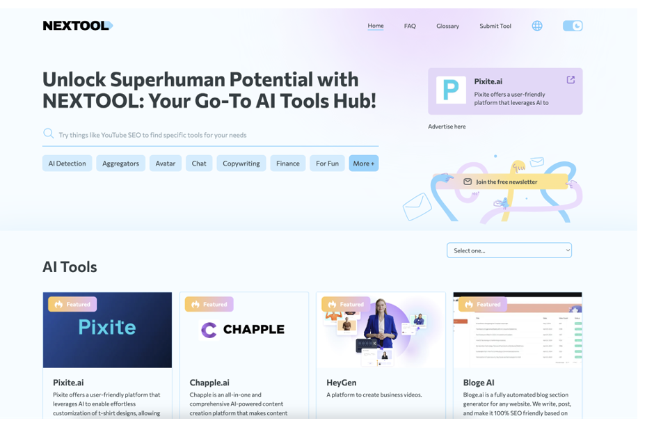 Nextool, kullanıcılarına 10 binden fazla yapay zeka (AI) aracını tek bir platformda sunan ve teknoloji alanında devrim yaratan dünyanın en büyük kataloglarından biri olarak hizmet veriyor. Platform, kullanıcıların ihtiyaçlarına uygun yapay zeka araçlarını kolayca bulmalarını sağlayarak, teknolojiye erişimi herkes için daha kolay ve etkili hale getiriyor.
